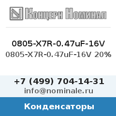0805-X7R-0.47uF-16V 20% (арт. 606698) — конденсатор из каталога nominale.ru. Технические параметры: ёмкость 0.47 мкФ, группа ТКЕ X7R, рабочее напряжение 16 В, допуск ±20%. Конденсатор используется в источниках питания, схемах сглаживания пульсаций и генераторах. Отгрузка со склада в Москве, доставка по всей России — транспортными компаниями, курьером или почтой. Принимаем оплату наличными, переводом, по безналу. Оформление заказа на сайте nominale.ru или по телефону +7 (499) 704-14-31.