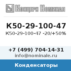 К50-29-100-47 -20/+50% — конденсатор, артикул 709179. Параметры изделия: допуск +50%. Конденсатор применяется в фильтрующих, разделительных и времязадающих цепях электронных устройств. Отгрузка со склада в Москве, доставка по всей России — транспортными компаниями, курьером или почтой. Принимаем оплату наличными, переводом, по безналу. Заказ и подбор аналогов: nominale.ru, тел. +7 (499) 704-14-31.